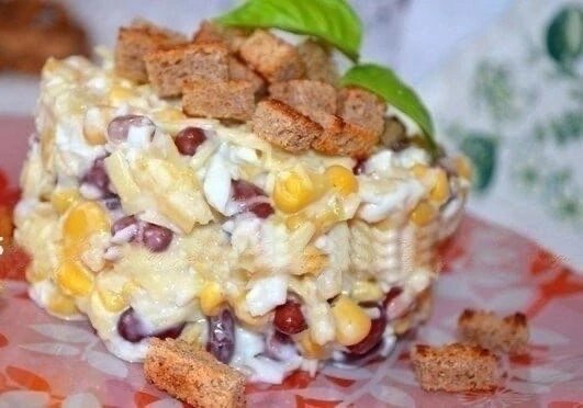 Салат с сухариками к праздничному столу. Как же это вкусно очень! Сохраняйте рецепт, чтобы не потерять! Моей семье очень понравилось!