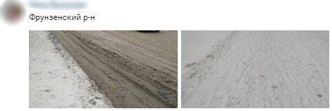 В паблике ведомства во «ВКонтакте» жители мегаполиса указали чиновникам из Смольного на последствия некачественной работы профильных предприятий, систематически не справляющихся со своей задачей, а также призвали перестать заниматься «болтовней» и заняться делом, чтобы не допустить повторения прошлогоднего «снежного коллапса». Так, житель Северной столицы в качестве наглядного примера бездействия коммунальщиков опубликовал фотографии дороги во Фрунзенском районе города. На них отчетливо видно, что на этом участке не работала снегоуборочная техника, поскольку проезжая часть и прилегающий тротуар скрыты под слоем «снежной каши». «Классно убираетесь», — с сарказмом написал в комментариях в сообществе Комблага во «ВКонтакте» другой петербуржец. Он также разместил фотографию, где видны последствия обильной «засолки» тротуаров. Такая же грязь запечатлена на фото еще одного жителя Петербурга, недовольного подходом администрации губернатора Александра Беглова к уборке городских территорий. Нап