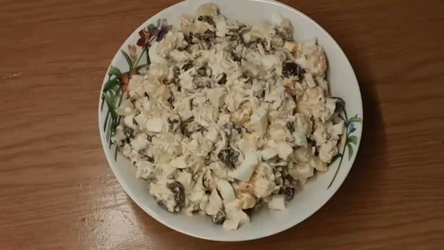 Вкусный и сытный салат, который готовится очень быстро. Сытный и питательный, подойдет как и на каждый день, так и к праздничному столу. 🔥 Лучшее в телеграм: Посмотреть Ингредиенты: Способ приготовления: Шаг 1. Шампиньоны промойте и нарежьте тонкими пластиками, толщиной примерно 3-5 мм. Разогрейте сковороду с растительным маслом и обжарьте на ней грибы до полного испарения жидкости. Не забывайте помешивать, чтобы избежать пригорания. Посолите по вкусу. Шаг 2. Нашинкуйте лук. Когда влага , выделенная грибами, испариться, добавьте на сковороду лук. Жарьте до полной готовности ингредиентов, затем переложите их в отдельную емкость. Шаг 3. Куриное филе и яйца нарежьте кубиком. Шаг 4. Слейте воду из банки с ананасами. Даже если у вас продукт консервированный кусочками, а не кольцами, все равно без применения ножа не обойтись. Как правило, не измельченные стандартные кусочки ананасов будут слишком крупными. Старайтесь сделать так, чтобы все ингредиенты в салате были одинакового размера. Ша