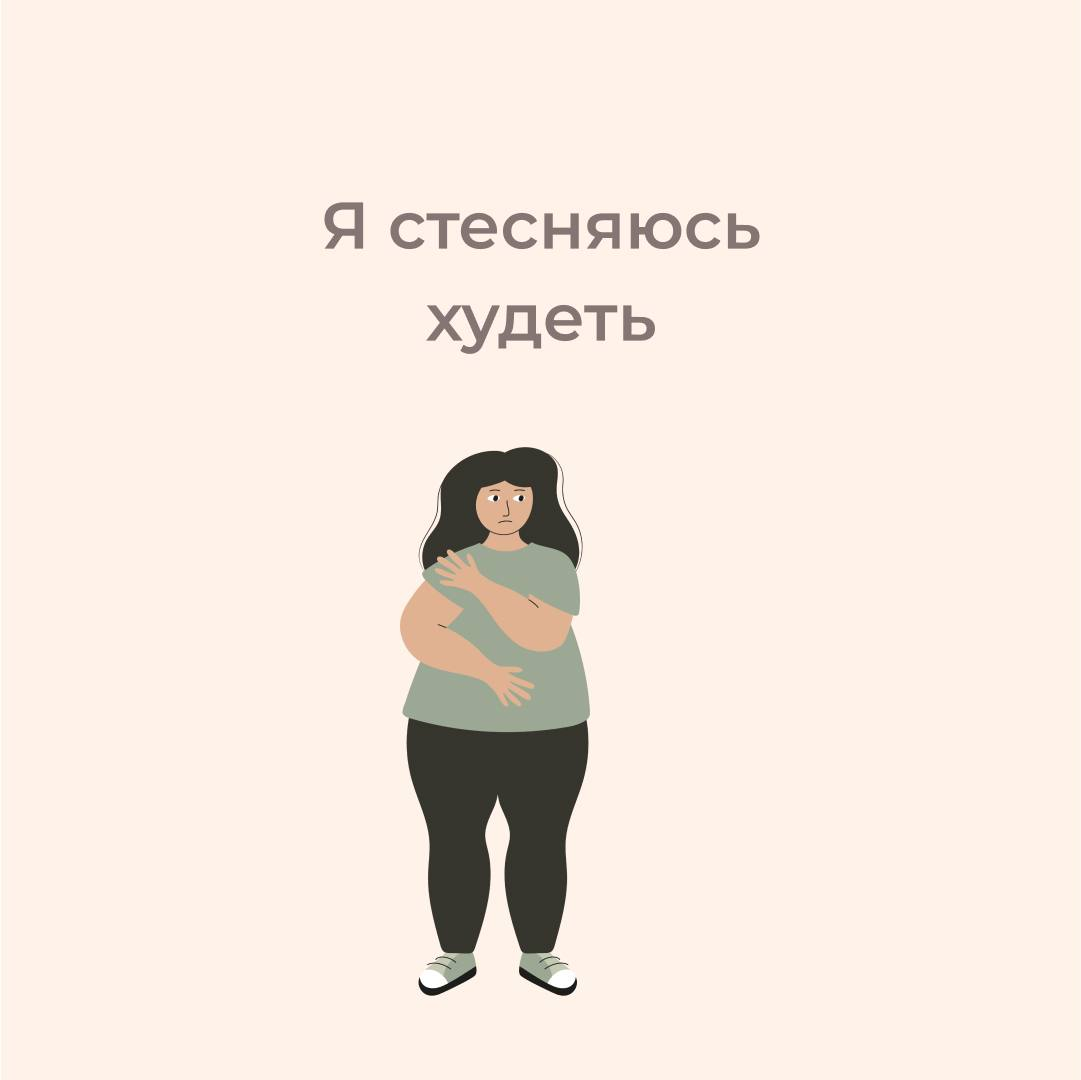«Я стесняюсь худеть» Задумывались ли вы о том, что многие люди не могут начать худеть, просто потому что…стесняются. Особенно, если лишний вес с детства и уже воспринимается, как неразрывная часть образа. Человеку с лишним весом сложно пойти в спортзал: кто что подумает? как я буду выглядеть в спортивной форме? буду потеть и ужасно выглядеть? буду смешно смотреться на фоне подкаченных стройных людей? Как отказаться на работе от торта или принести еду с собой? Будут смеяться, что я худею? Привлеку к себе лишнее внимание? Получу насмешки? Даже если я начну и у меня получится. Что будет, если я сорвусь и наберу вес? Скажут ли мне, что безвольный? Подумают ли, что не смогу? Мы об этом с вами не задумываемся, но хочу обратиться к обеим сторонам: 1. Не смейтесь над худеющими людьми, не акцентируйте внимание на их весе и выборе еды. Не подчеркивайте их изменения. Если хотите сказать что-то приятное, скажите: «ты прекрасно выглядишь», без оглядки на вес 2. Худеющие. Не объявляйте всему миру, ч