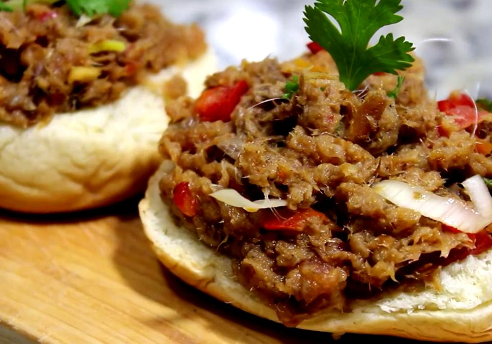 Затем разрежьте любимую школьную (или на ваш выбор) булочку на две части и накройте каждую часть приготовленным форшмаком из сардины. Оригинальная закуска готова к употреблению.
