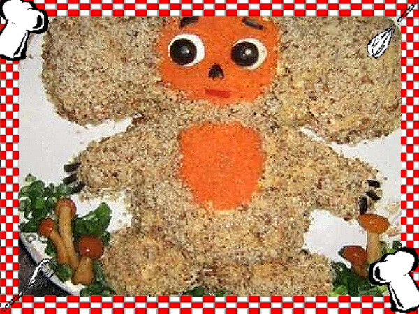 Хотели бы вы лицезреть настоящего Чебурашку не на экране, а у себя на тарелке в виде салата? Думаю, что да, а ваши дети уж точно. Тем более Новый год уже не за горами, можно будет собираться на кухне и чуточку поколдовать. Вам будет нужно: Начинаем готовку: