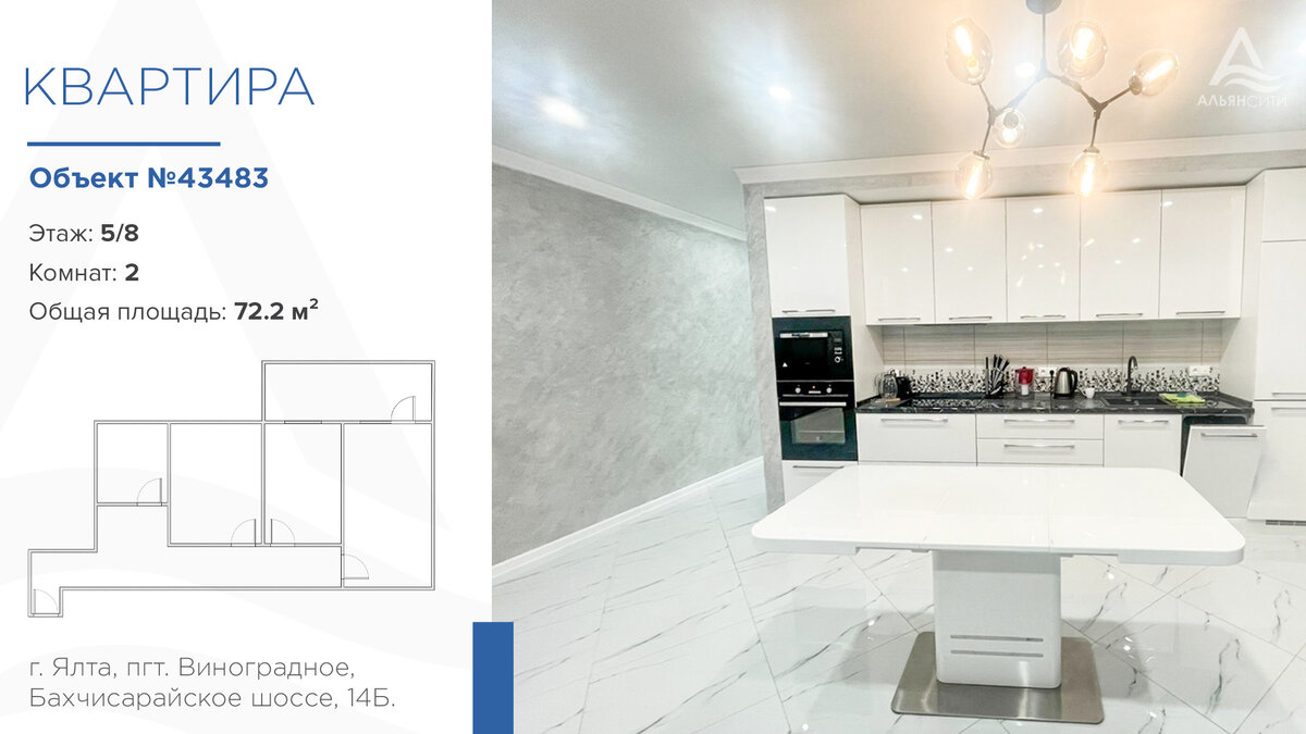 Предлагаем Вашему вниманию евро 2-комнатную квартиру в новом современном жилом комплексе ЖК Горизонт Плаза в городе Ялта, поселок городского типа Виноградное, улица Бахчисарайское шоссе, дом 14Б.