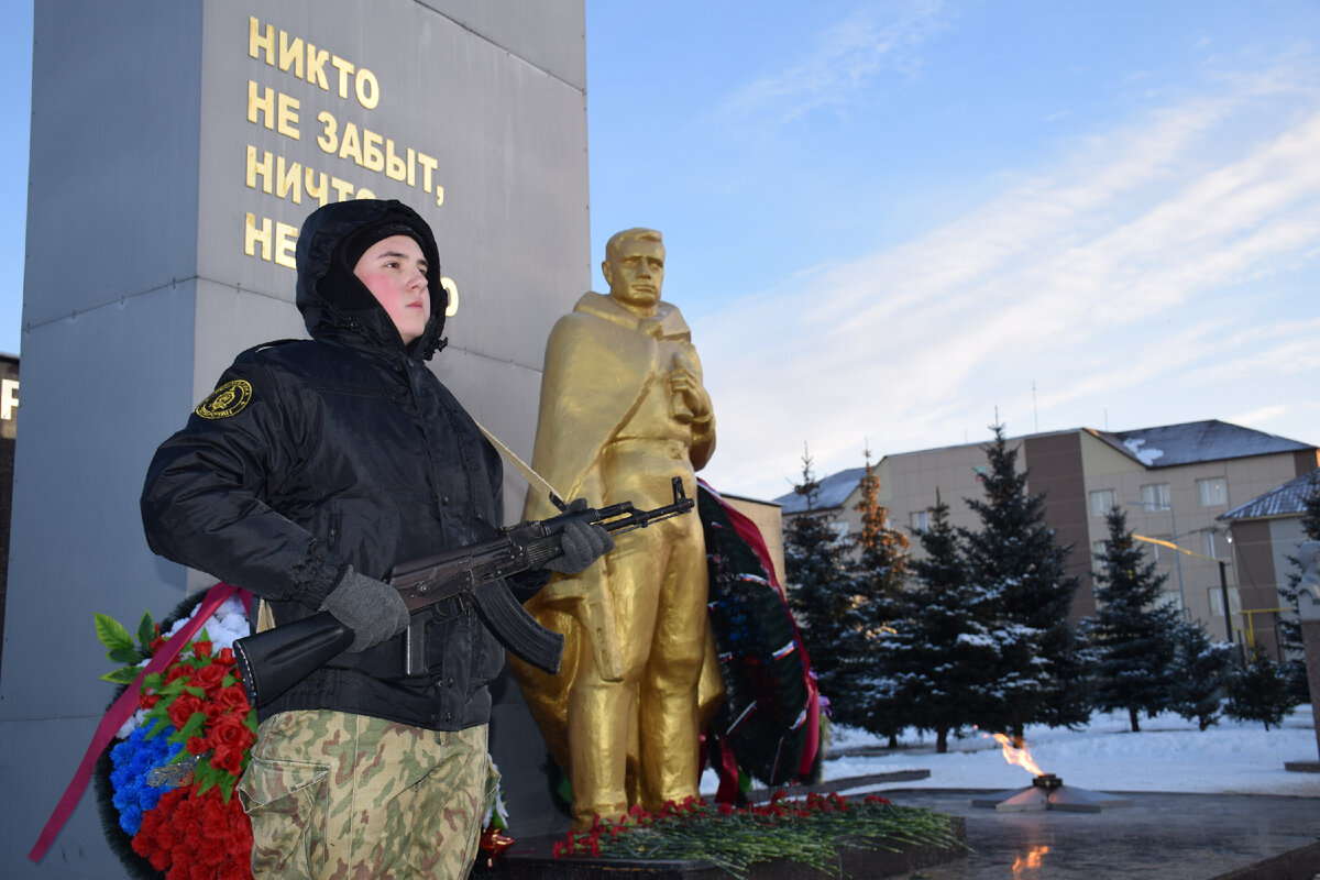 Нурлатцы почтили павших земляков минутой молчания, возложили венки и цветы к мемориальному комплексу Памяти и Славы.