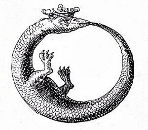 В конце года принято подводить итоги. Символом уходящего года я бы назвал уроборос — зме́я, кусающего себя за хвост. Он вполне наглядно обрисовывает суть событий, происходивших в этом году, и задающих тон еще предстоящим делам. Уроборос — один из самых древних символов, известных человечеству. Его точное происхождение установить невозможно. Корни теряются в глубине истории. Этот символ невероятно емкий. Он вобрал в себя, кажется, всё. Раньше людьми управляли при помощи хаоса — сил природы, катаклизмов (падение метеоритов, потопы, оледенения и пр.), заставляя их не сидеть сложа руки, а покидать насиженные места и идти по белу свету в поисках счастья. И они шли — из обжитой, но гибнущей родной Гипербореи в Азии, Африки, Европы, несли с собой в котомочках (как всё тот же ёжик в тумане) остатки своей культуры и цивилизации. Не везде принимали их с распростертыми объятиями и почитали за богов, как в Индии. Приходилось и сражаться — как с детьми Дракона. Заключение мира с последними семь с п