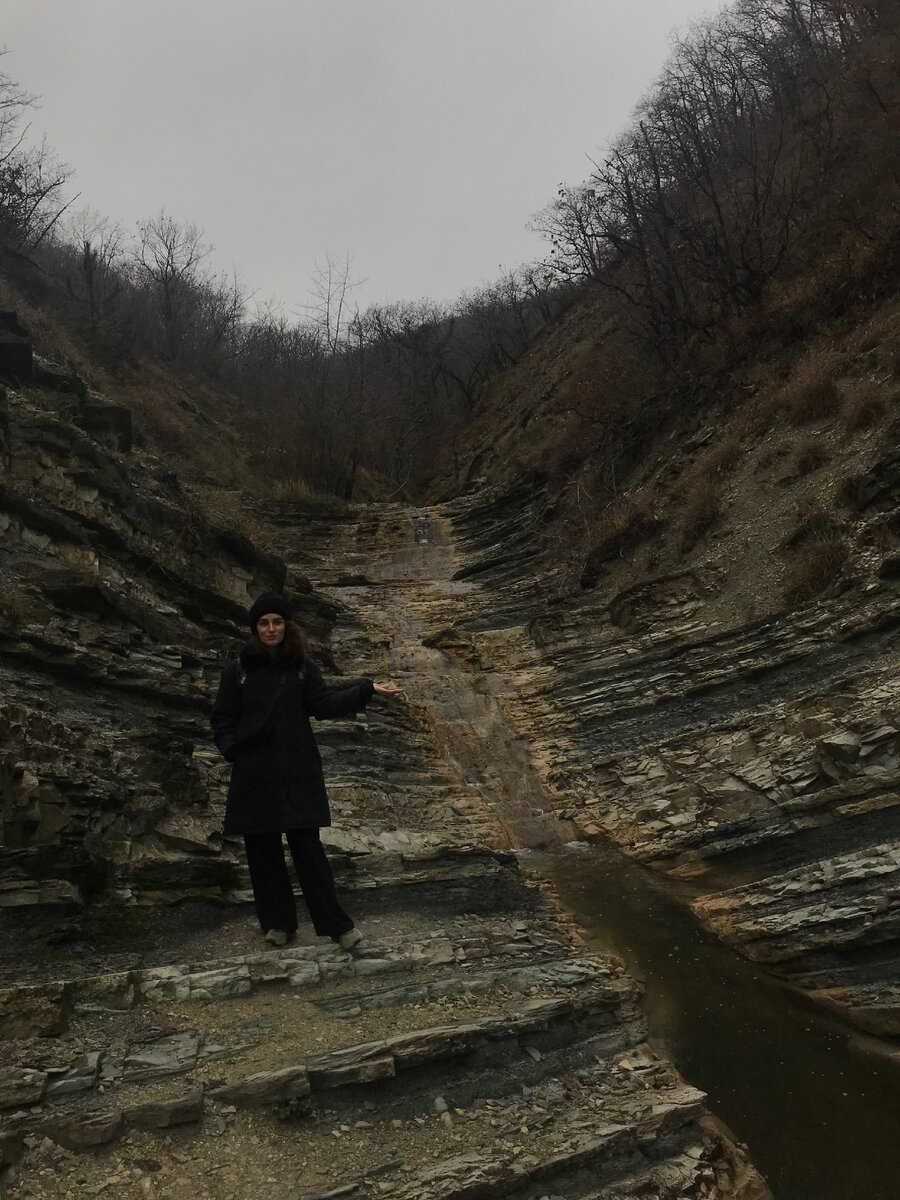 Самая доступная природная достопримечательность в черте Новороссийска чеееек ☝🏼 Это - Черкесское ущелье, которое представляет из себя каскад 12 небольших водопадов. Высота их составляет не более 5 метров, но вид все равно прикольный, особенно, как выглядит слоистая порода. Добраться до этого популярного места не составит труда. Мы, например, доехали на такси до конца улицы Луначарского (про нее расскажу отдельно 😅). После этого прошли метров 20 по бездорожью и вышли на небольшую горную родниковую речку. Да, до водопадов надо будет идти как бы по ее дну 🤿 Знающие отмечают, что в сезон дождей пройти к водопадам будет невозможно, так как река будет полноводной и пройтись по ней, перешагивая нынешний ручеёк, как мы, не получится ⛲️ Кстати, идти по камням очень удобно - они будто ступеньки 🦫