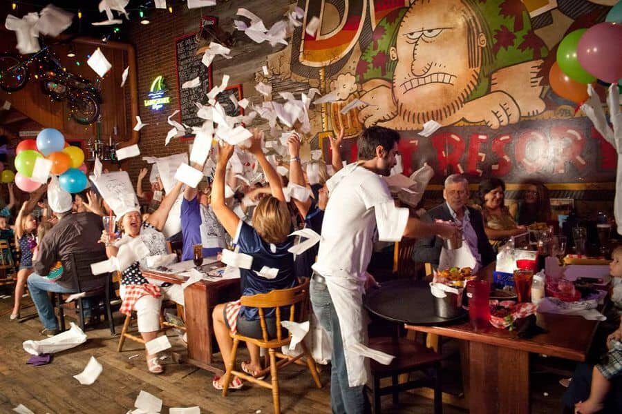 В Америке есть сеть «диких» пабов под названием «Dick’s Last Resort» (что на сленге значит – здесь много дурнушек), где крыть посетителей трехэтажным – хороший тон. Твой заказ с первого раза не принесут (как же, разбежались!), даже тарелку, ложку-вилку и салфетку могут не подать – в лучшем случае нарисуют их на столе. Все стены и мебель разрисованы неприличными словами, как в придорожном сортите. А называется это – маркетинговый ход. Нравится ли такое обслуживание народу? Да кто ж его знает – жалобной книги здесь нет. Только организаторы этого безобразия открывают уже 17 паб. А началось у них всё с дорогого элитного ресторана. Но прогорели! И обиду на мир затаили жуткую. Вот и придумали, как отомстить!