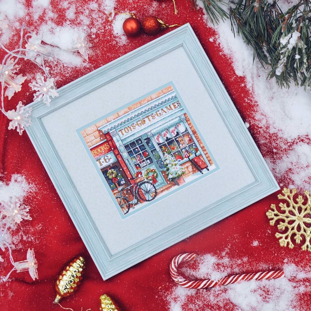 Приветствую, друзья! Рада всем, заглянувшим на мой канал. За время, пока я увлекаюсь вышивкой, у меня накопилось достаточно много вышитых картин. Я даже попробовала снять видео, где показываю все свои оформленные работы, но оно получилось продолжительностью более часа. Думаю, такой формат видео в дзене будет не совсем интересен, поэтому попробую показать картины частями в серии статей. А так как сейчас зима, самое время показать картины с зимней тематикой. Начну с набора Dimensions из серии Gold Collection Petites "Toy Shoppe". В состав набора входит: канва Aida 18 белого цвета, хлопковые нитки мулине, которые разобраны и закреплены на органайзер, золотые металлизированные нити, игла, схема и инструкция. Размер работы 15,2 х 15,2 см. Дизайн небольшой, но пришлось потрудиться - каунт канвы мелкий, плюс частая смена цветов. Работа оформлена в пластиковый багет и два оттенка паспарту. Верхнее паспарту, с еле заметным рисунком, смотрится особенно красиво. Одна из самых любимых работ "Holid