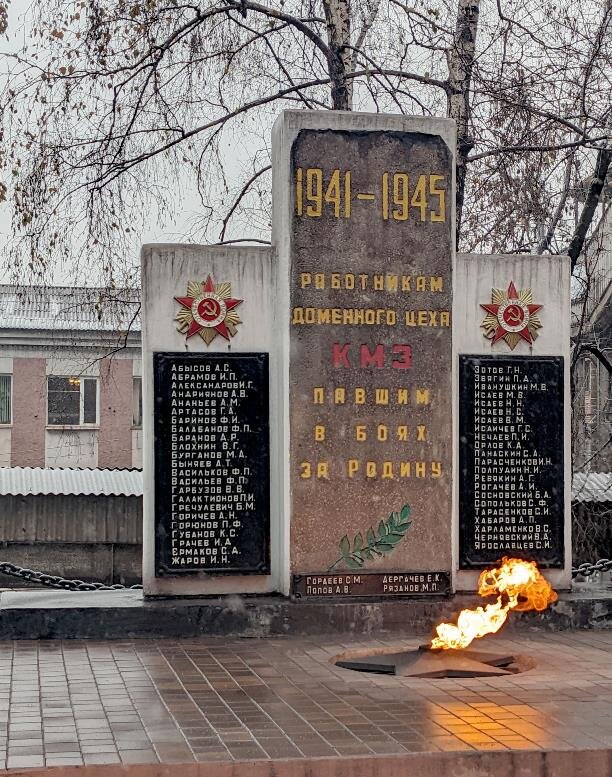 8 мая 1975 года на территории завода отрыта стела с именами погибших металлургов и Вечным огнем. В 2022 году стела отремонтирована, окружающая ее территория приведена в порядок.