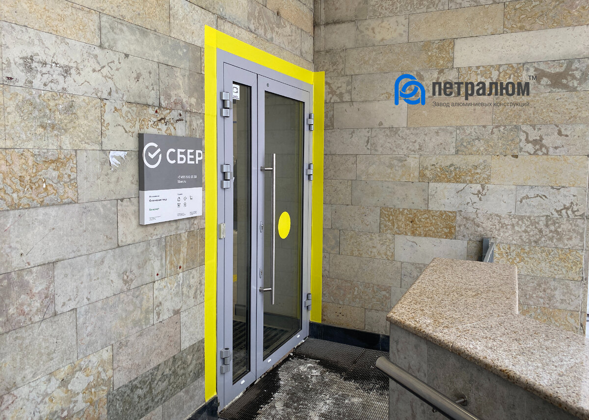 Специалисты компании «Петралюм» установили дверной блок архитектурно- строительной системы в отделении «Сбербанка».