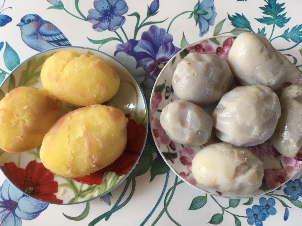 Почему посинела отварная картошка? Разберем 10 причин посинения картошки. Назовем и очевидные, и невероятные причины. Причем сразу скажу, что посинение и почернение — это про разное. Если картошка чернеет — то чаще пятнами, а не весь клубень целиком. И с варкой это никак не связано. Поэтому данная статья будет исключительно по синюю картошку, а не черную. Картошка, которая чернеет, она и до варки чернеет, если пролежит зиму. Не вся, но пятнами отдельными. После варки пятна черноты только увеличиваются. Итак, почему же посинела картошка после варки? Замечено, что часто именно рано выкопанная картошка после варки становится с голубым оттенком. У молодого картофеля еще и шкурка плохо сформировалась. Но бывает, что и мякоть водянистая из-за большого количества ливней в отдельный сезоны. Всегда находятся специалисты, которые, при упоминании посиневшей картошки — начинают про состав удобрений рассказывать. Как-то один мой читатель пошутил: «Конечно вы не видите последствий от употребления си