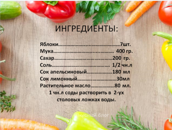 Для того чтобы приготовить постную шарлотку без яиц и без молочных продуктов нам нужны Подготовим яблоки. Вынимаем сердцевину и режем их на ломтики и сразу укладываем их в форму. Форму промазываем растительным маслом на дно можете положить бумагу для выпечки, а уже потом начинку. Яблоки выкладываем так чтобы полностью покрыть дно. Смешиваем сахар, соль, апельсиновой и лимонные соки и растительное масло. Соки должны быть свежевыжатые. Добавляем просеянную муку. Хорошенько перемешиваем. Затем выливаем соду, растворенную в воде, и еще раз перемешиваем. Готовое тесто перекладываем на наши яблоки. Аккуратно разравниваем тесто по поверхности, и запекаем шарлотку в нагретой до 190 градусов духовке 50 минут. Готовность, как обычно,проверяем зубочисткой. А после того, как шарлотка приготовиться, не спешите вынимать ее из формы, а дайте ей постоять. В перевернутом состоянии он выглядит вот таким образом Если вам понравилась статья, поделитесь ее в социальных сетях. Какие рецепты шарлотки зна