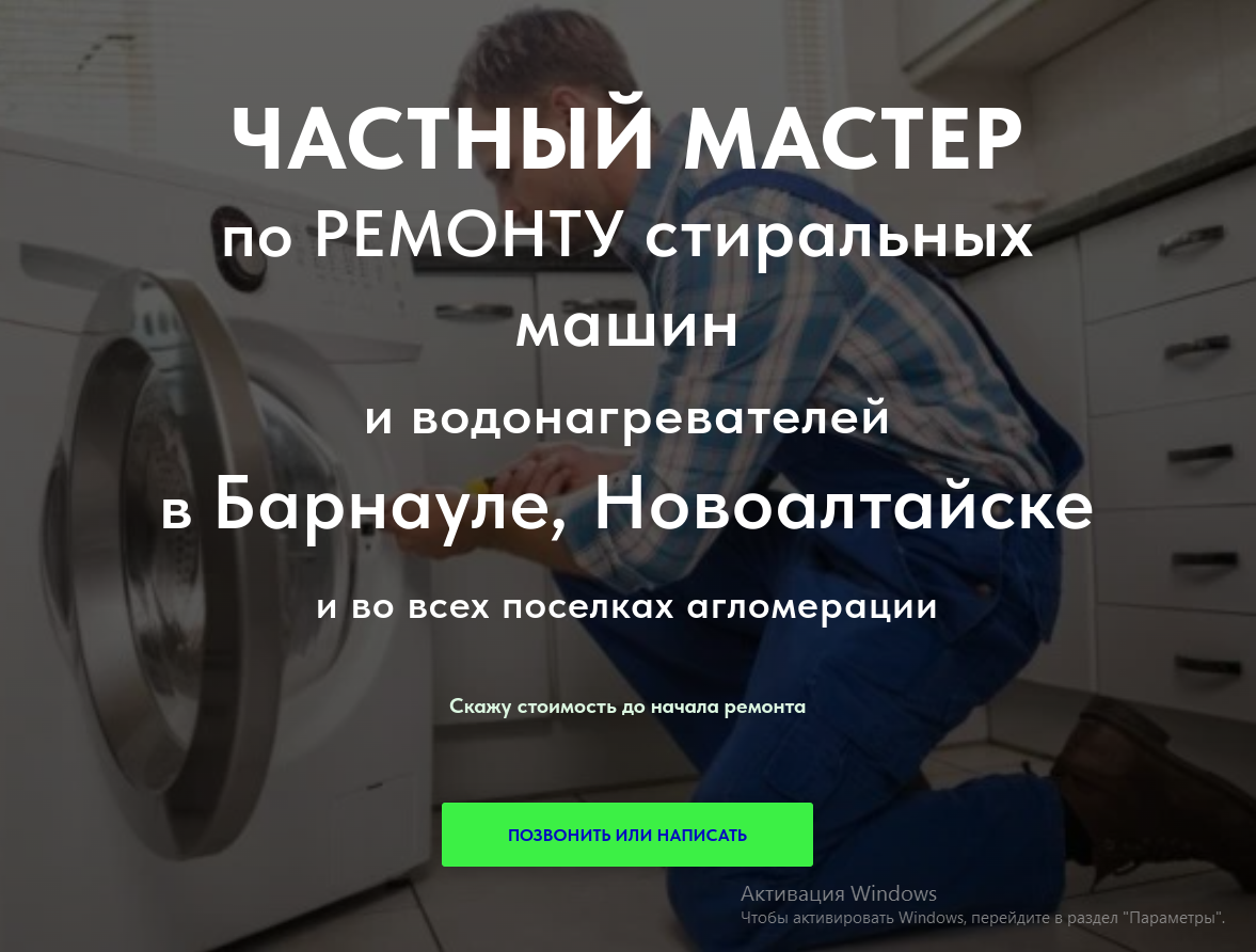 На мобильном телефоне это удобно. Сложных форм не стала делать, потому, что поломка машины - это срочно, значит ждать ответного звонка мало кто захочет. Простенький сайт для простенькой моно-услуги по ремонту стиральных машин. Вскользь упомянули про установку машин и водонагревателей. Реклама в сетях выглядит так: Мастер говорит, что звонки идут. Вначале посмотрела как алгоритм ИИ самостоятельно справляется с размещением рекламы в потоке, потом все же решила сделать дополнительную кампанию с набором обьявлений для поиска, потому что Директ, как то не очень дружил с поисковиком Яндекса. От слова сов