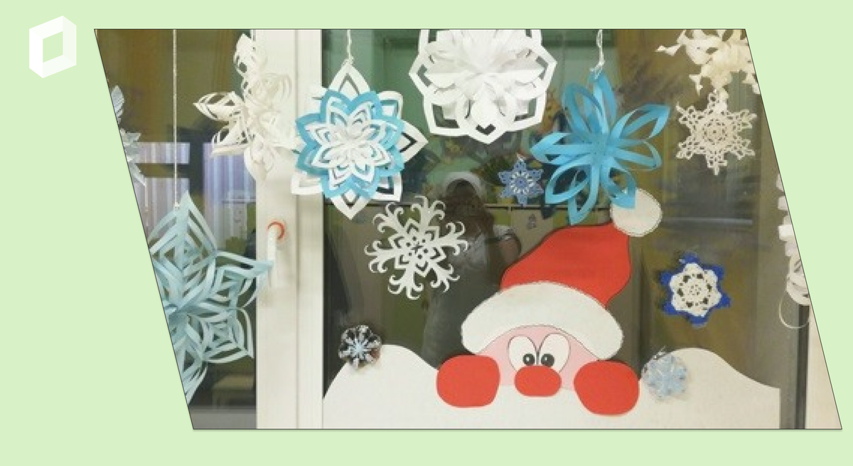 Объемные силуэты из бумаги. Они дополнят традиционные бумажные снежинки и кружочки, которые педагоги часто используют для эффекта снегопада. Объемные силуэты и фигурки можно раскроить за пару минут, а потом закрепить их на окне. Важно при этом соблюдать меру: нельзя заклеивать стекло целиком, чтобы не препятствовать естественному свету. Иначе вы нарушите СанПиН.