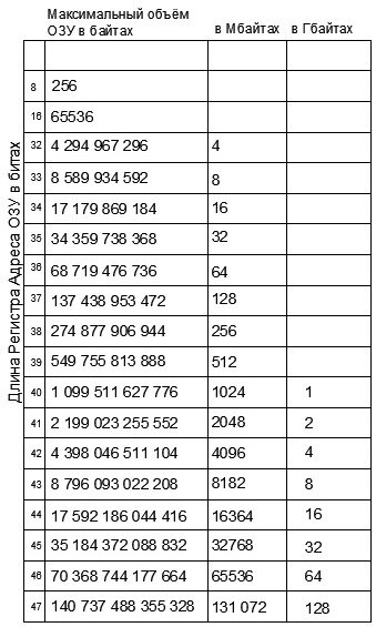 Таким образом, для адресации 32 Гигабайт ОЗУ нужно 45 битов в Регистре Адреса или неполных 6 байтов.