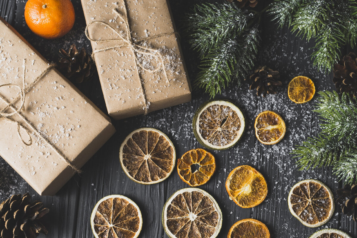 Вы можете взять крафтовую бумагу, обернуть свечу и запечатать воском, прикрепить к упаковке сублимированные фрукты (апельсин - классика).