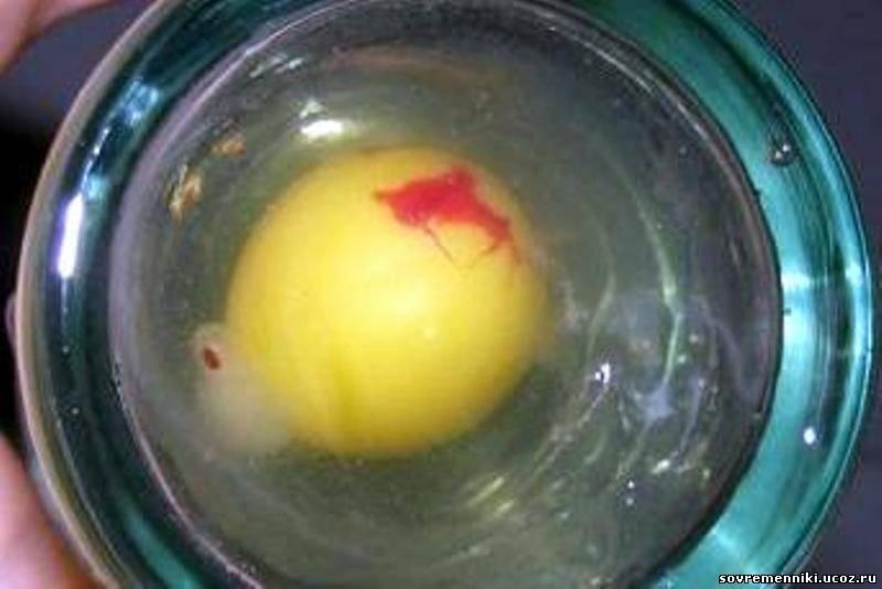 Наиболее страшными последствиями обладает порча, выявленная изменениями всех элементов содержимого куриного яйца. При такой картине видны темные пятна и пузырьки, покрывающие б