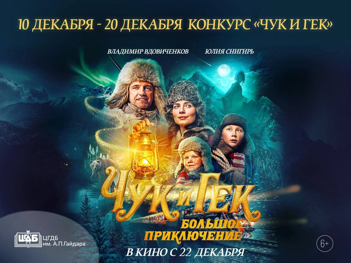 Участвуйте в конкурсе и получите билет. 22 декабря в прокат выходит фильм «Чук и Гек. Большое приключение» с Владимиром Вдовиченковым и Юлией Снигирь в главных ролях. Два дружных, но озорных брата живут с любящей мамой в Москве и скучают по папе, который работает далеко на Севере. Решив во что бы то ни стало встретить наступающий Новый год вместе, они отправляются в захватывающее путешествие к таинственным Синим горам. Картина снята по мотивам произведения Аркадия Гайдара, и её будут показывать во всех кинотеатрах страны. Мы, конечно, не могли пройти мимо такого кинособытия и вместе с создателями фильма придумали конкурс! Вы наверняка помните, что Чук и Гек — это сокращенное от Вовы и Сережи. Вовчук-Чук и Сергейка-Гейка-Гек. А как вас называют близкие, какие у вас забавные домашние прозвища? Рассказывайте в комментариях под этим постом. Итоги подведём 20 декабря. Победителей выберем рандомно, они получат приглашения в кинотеатр на выбор на фильм «Чук и Гек. Большое приключение».