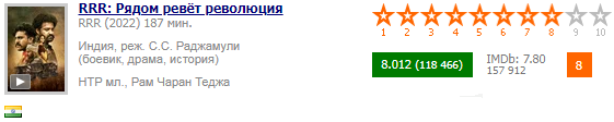 Продолжаем препарировать 2022 год - сегодняшний обзор будет многонациональным, ведь у нас гости из Индии, Норвегии и США. Во-первых, "RRR: Рядом ревет революция" (боевик, драма, история) С. С. Раджмули - эпичная сага о революции в Индии. Во-вторых, "Все ненавидят Йохана" (комедия) Халлвара Витсё - странноватая, холодная и отстраненная "комедия". И, наконец, в-третьих, байопик про Элвиса с соответствующим названием - "Элвис" (драма, музыка, биография) База Лурмана. "RRR: Рядом ревет революция" С. С. Раджмули Индия времен британской оккупации. Судьба сливает воедино жизни преданного полицейского Рамы и отважного Бхима из племени гондов, неустанно бьющегося за жизнь и свободу своей племянницы. Однажды они вместе спасают незнакомого мальчика, что положит начало их большой дружбе. Они доверяют друг другу все, кроме, пожалуй самого важного, своих секретных миссий. Это неизбежно приведет их на разные стороны баррикад и заставит принимать самые трудные решения в жизни. А в сердцах и умах людей