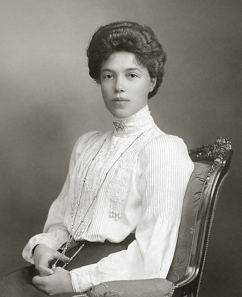 Романовы считались строгими родителями. Великая княгиня рано потеряла отца (император умер в 1894 году), а с матерью, по воспоминаниям современников, отношения были более прохладными. «Приходя к ней, я всегда чувствовала себя не в своей тарелке. Я изо всех сил старалась вести себя, как следует. Никак не могла заставить себя говорить с Мама естественно. Она страшно боялась, что кто-то может перейти границы этикета и благопристойности… Если мы с Михаилом делали что-то недозволенное, нас за эту шалость наказывали, но потом отец громко хохотал. Например, так было, когда мы с Михаилом забрались на крышу дворца, чтобы полюбоваться на огромный парк, освещенный лунным светом. Но Мама, узнав о таких проказах, даже не улыбалась. Наше счастье, что она была всегда так занята, что редко узнавала о наших проделках». По воспоминаниям Великой княгини, няня Элизабет Франклин, приглашенная из Англии, не только стала для нее самым близким человеком в детстве, но и верной подругой во взрослой жизни. Другим по-настоящему близким человеком стал старший брат Михаил.