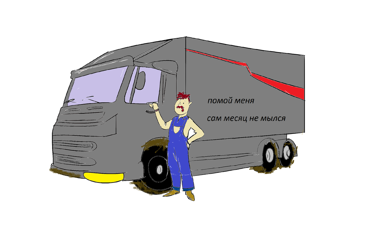 Подходит дальнобойщик к своей машине, а на ней надпись:— Помой меня!Водитель пишет ниже:— Сам месяц не мылся!
