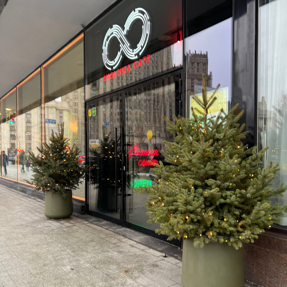 Несчастливая для общепита, магазинов и отелей нечетная сторона Смоленской площади. Первый этаж кирпичного дома, широкие витринные окна, новая черно-красная вывеска на западном языке «Smolenka Cafe» – аккурат на месте, где раньше был корявый азиатский проект Asiatico, который долго открывался и быстро закрылся. Вход – две елки в рамках подготовки к НГ, знак бесконечности и широкие двери. Место новое, а на деле это давнее White Cafe, что тихо-тихо съехало с Нового Арбата, из стеклянного помещения полуподвального толка рядом с мэрией и через дорогу от Белого дома.