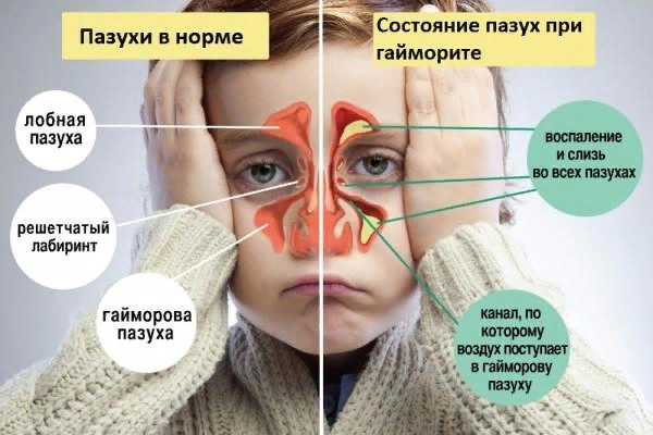травмы гайморовых пазух, нарушающие слизистую оболочку;