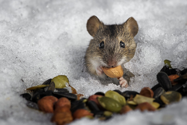 Прознала как-то мышь-полёвка, что мельник в свой дом пять мешков зерна привёз. А на улице зима, мороз. Еды днём с огнём не сыщешь. Решила мышка подкрепиться да запасы свои пополнить — наведаться к мельнику. Ночь снежная выдалась, безлунная. Бежит мышка, от страха попискивает — в каждом кусте, за каждым деревом ей чудище когтистое мерещится. Наконец добежала она до дома мельника, проскользнула в лазейку да скорей на печку — погреться. Темно в хате, все спят. Осмотрелась мышка вокруг — мешки с зерном у порога стоят. Обрадовалась и вдруг видит, лежит на печке существо непонятное — ручек-ножек не видать, тельце худое да маленькое, а голова большая-пребольшая. Открыло чудище глаза да как заорёт! Рот огромный, беззубый, так и кажется полёвке, что проглотит её сейчас существо неведанное. Сидит мышка, пошевелиться от страха не может. Потом как подскочит и наутёк. С перепугу даже про зерно забыла. До самой норки мышь-полёвка без оглядки бежала. Вьюга воет, а ей кажется, что чудовище за ней бежи