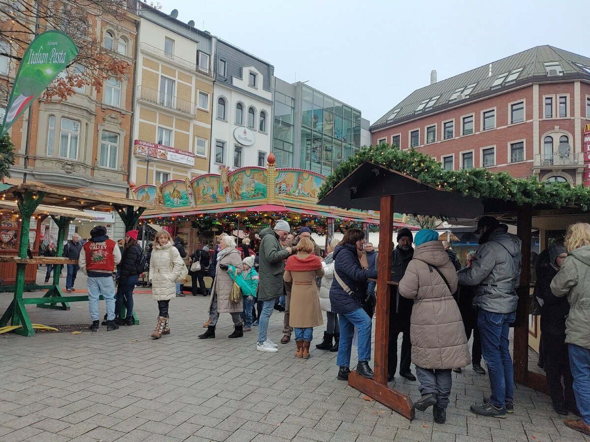 Ахен- город в Германии, недалеко от границы Нидерландов. Ежегодно там проводится Рождественская ярмарка, которая известна далеко за пределами Германии. Поехали окунуться в праздничную атмосферу и мы. Ошибкой было приехать в субботу. Людей было не много, их было просто тьма. Главное было- влиться в людской поток и тебя куда-нибудь да вынесет. Больше всего народу толпится у палаток с едой. Особой популярностью пользуются сосиски. Идут они с булкой, горчицей и со свистом. Второй непременный атрибут рождественского рынка- глинтвейн. Глинтвейн отлично согревает и здорово поднимает боевой дух. Стаканчик глинтвейна можно урвать в бумажном стаканчике, а можно в красивой кружке. За красивую кружку берут залог, так что можно оставить её себе на память. Чем больше вечерело, тем больше появлялось у испивших согревающего напитка задора, песни слышны были все чаще. Дети тоже не обижены, чего только для них нет: знаменитые ахенские пряники, палки-жевалки, горячие вафли и много-много другого, вре