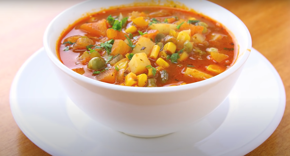 Похудеть и согреться этой зимой помогут эти супы, убивающие голод. Простые рецепты содержат клетчатку, белок и другие ингредиенты, благодаря которым твой живот будет полным, а обмен веществ - оживленным всю зиму. 1 Рецепт овощного супа 240 калорий (1 порция) Этот суп насыщен свежими овощами и ароматом. Он содержит мало калорий, что делает его идеальным обедом, перекусом или закуской! Ингредиенты 1 ч.л. оливкового масла 1/4 чашки измельченного лука 1/4 чашки нарезанной моркови 1 ст. ложка измельченного сельдерея 1/2 зубчика чеснока, рубленый 1 чашка куриного или овощного бульона 60 гр помидоров, нарезанных кубиками 1/4 чашки очищенного картофеля, нарезанного кубиками 1/2 ч.л. измельченной свежей петрушки 1 лавровый лист 1/4 ч.л. сушеного тимьяна Соль и молотый черный перец 1/4 чашки замороженной или свежей стручковой фасоли 1/4 чашки замороженной или свежей кукурузы 1/8 чашки замороженного или свежего горошка Приготовление Разогрей оливковое масло в большой кастрюле на среднем огне. До