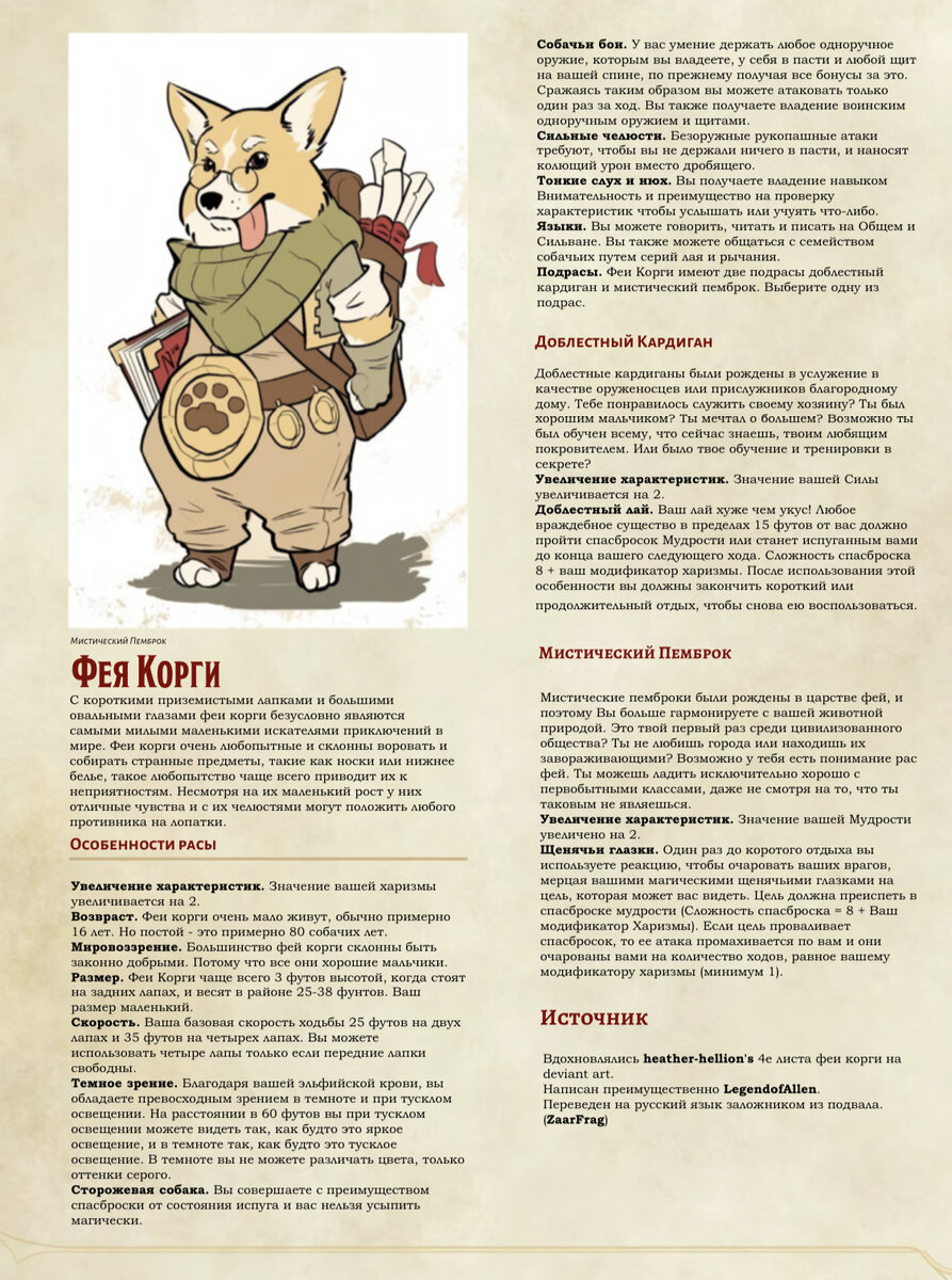 Перевели лист расы Фейского Корги. Будьте хорошими мальчиками