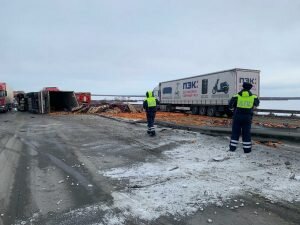 Фото: УГИБДД ПО ЧЕЛЯБИНСКОЙ ОБЛАСТИ В Челябинской области перевернулась фура с мандаринами на трассе М-5. В результате вся дорога оказалась в цитрусовых. Об этом информирует Telegram-канал «Осторожно, новости». По предварительной информации, днем 11 декабря этого года на трассе М-5 28-летний водитель грузового автомобиля Volvo не справился с управлением и столкнулся с автомобилем «КАМАЗ», который стоял на дороге. В результате аварии из фуры выпали сотни мандаринов. По словам очевидцев происшествия, запах цитрусовых был слышен издалека. На данный момент на этом участке организовано движение по одной полосе. Сотрудники полиции устанавливают все причины и обстоятельства случившегося. Напомним, на Сибирском тракте под Екатеринбургом произошло ДТП с участием тяжеловоза и ВАЗ-21099. Пассажира и водителя отечественного авто госпитализировали в больницу. Выяснилось, что ВАЗ двигался в сторону Екатеринбурга из Тюмени, а грузовик направлялся сзади. Отмечается, что ВАЗ начал сбрасывать скорость,