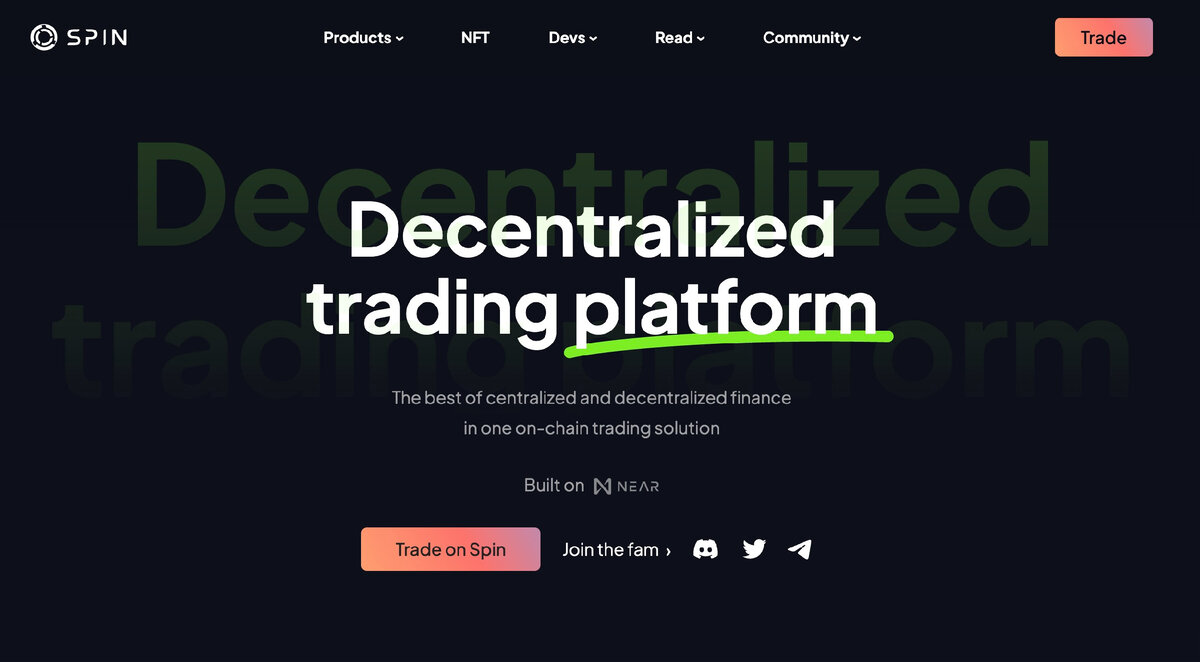 Spin - это торговая платформа Defi (DEX) на протоколе Near, цель которой - предоставить пользователям конкурентоспособный с точки зрения CEX опыт торговли на DEX бирже. Spin уже запустила и провела аудит спотовой и бессрочной торговли. Проект поддерживают GSR, Spartan, Near Protocol, AngelDAO и др. Токен $SPIN, который еще предстоит запустить, станет полезным токеном экосистемы Spin. Варианты использования: - Управление - стейкинг - В качестве залога - Программы поощрения.
