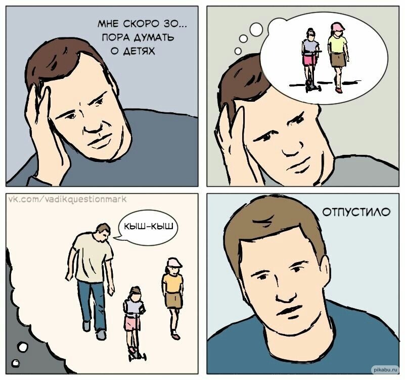 Привет, дорогой друг! Сегодня я хочу обсудить с вами очень важную тему. И нет — это не то, как похудеть к лету и при этом есть все, что нравится. И не то, какой фильм или сериал посмотреть. Сегодня все будет на самом деле серьезно! Тема наших комиксов — дети. Как много в этом слове смысла! Ведь дети, они такие милые, веселые, общительные… Но только если смотреть со стороны или прийти в гости на часок-другой) Так давайте сегодня немного побудем теми самыми гостями? Которые пришли на часок-другой к своим друзьям и на все смотрят через призму смеха. Для начала, давайте представим что вам, как и герою комикса, за авторством Вадика. И как вы думаете, какой вопрос холостому человеку будут задавать все окружающие? Вы когда-нибудь замечали, что многие дети считают свои игрушки одушевленными? Мне страшно подумать, что было бы, если бы некоторые из них ожили. Следующий комикс Райана Хадсона, наверняка отразит самые большие страхи многих из нас) В волшебном мире, дети особенно ценны. Особенно, ес