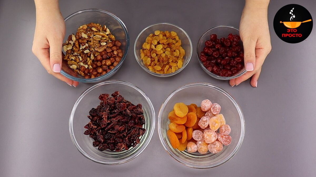 Сегодня печём рождественский творожный штоллен. Невероятно вкусный пряный кекс с большим количеством всевозможных вкусняшек – с цукатами, сухофруктами, орехами, готовится он определённой традиционной формы, которая сохранилась ещё c давних времён. СПОСОБ ПРИГОТОВЛЕНИЯ: Для начала подготовим начинку. Я взяла сушёную клюкву, курагу, сушёный кумкват, а также вяленую вишню, изюм и 2 вида орехов – грецкие и фундук. Курагу и кумкват нарезаем на небольшие кусочки (вместо кумквата можно взять апельсиновые цукаты). Орехи измельчаем, оставляя небольшое количество крупных кусочков. Сушёную клюкву, вяленую вишню и изюм замачиваем в алкоголе обязательно, а вот курагу и цитрусовые цукаты на ваше усмотрение, но я предпочитаю замачивать всё. Поэтому заливаю начинку белым ромом, перемешиваю, накрываю пищевой плёнкой и оставляю в таком виде, как минимум на 1 час, а лучше оставить на ночь, таким образом получится ещё ароматнее. Займёмся тестом. 250 г мягкого сливочного масла и 200 г сахара взбиваем до пы