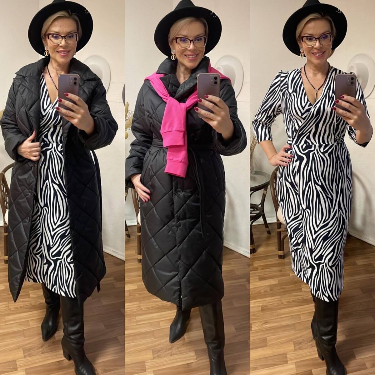 Телеграм: iriglow Не забывайте ставить лайк за мои старания! Платье для тех девушек, которые любят демонстрировать свою фигуру, предпочитая более приталенные модели оверсайзу. Не смотря на достаточно лаконичный силуэт и черно-белый цвет, платье выглядит эффектно и стильно. Подойдет для самых разных типов фигур и красиво подчеркнет зону декольте V-образным вырезом. Следом сразу же идет базовое черное пальто, которое можно разбавить ярким акцентом в виде шарфа или свитера. Кстати, с этим платьем они идеально сочетаются по длине. Только обязательно надевайте высокие сапоги! Темно-синий джемпер уже полюбившегося мне фасона из дост