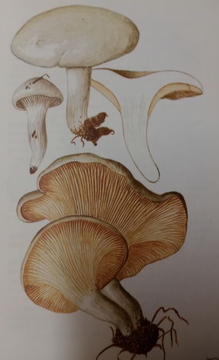 Растет в лесу гриб который называю мучным грибом. Это гриб ивишень. Другое название подвишень. Почему его так назвали совершенно непонятно. Чаще всего растет он под елками или в смешанном лесу. Встречается подвишень и на страничках грибных справочников. Так есть у него страничка в справочнике чешском. Найти подвишень можно и в справочнике немецком. Есть подвишень в грибном определителе англо-американском. Встречается подвишень и в Подмосковных елках. Именно в елках,хотя если судить по названию должен расти под вишней. Под вишней кстати растет похожий белый грибок-терновый розовопластинник. А вот ивишень не растет. Отличается подвишень розовыми пластинками в зрелом возрасте. Запах считается мучным, но больше похожий на кондитерский. Довольно приятный, раздражения он не вызывает. Считается, что гриб пригоден для маринования. С большим количеством пряных приправ и после отваривания. Но собирают его крайне редко. И это понятно, так как, когда растет этот ивишень, рядом растет много опасны