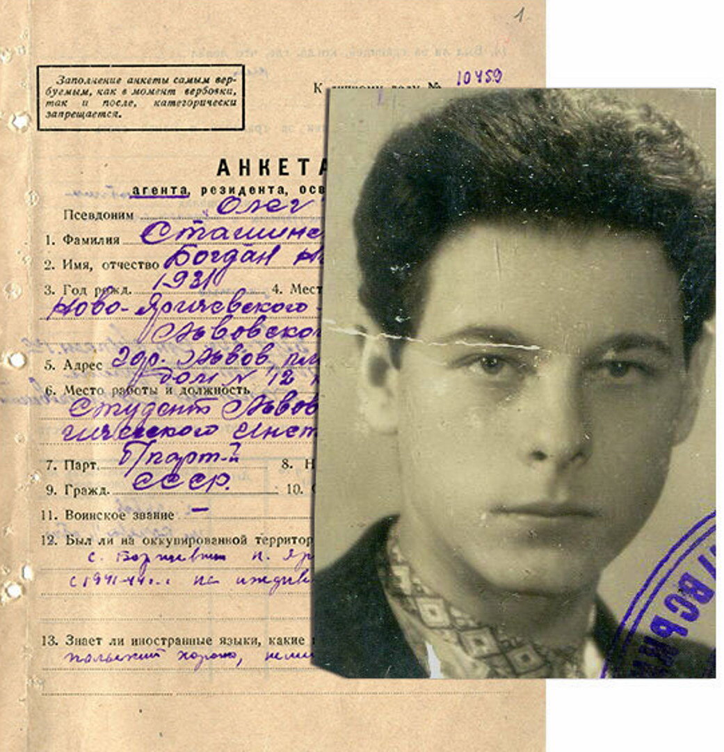 Богдан Сташинский родился в семье, связанной с украинским националистическим подпольем. Наблюдая, как националисты расправляются с мирными гражданами Украинской ССР, он решил сотрудничать с органами государственной безопасности. В 1950 году такая возможность представилась. В апреле 1950 года студент Львовского педагогического института Сташинский был пойман милиционером за то, что ехал в автобусе без билета. Парень попросил его отвести в отделение МГБ, где он рассказал всё, что знает о бандитском подполье. Сташинский был завербован органами государственной безопасности, как агент-информатор и отличился в поимке местных главарей националистического сопротивления. Чекисты увидели в нем потенциал и молодой человек был принят в группу "Тайфун" Львовского облуправления МГБ, которая занималась ликвидацией бандитского подполья. Затем был направлен на учебу в Киев, где совершенствовал свои навыки, обучаясь разведывательной деятельности для работы за рубежом. Работал в Берлине, в качестве с