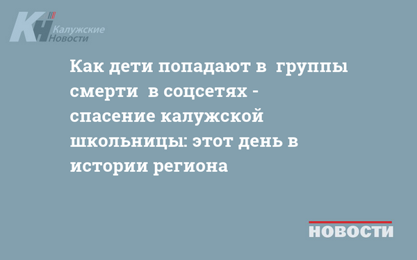 Как дети попадают в "группы смерти" в соцсетях - спасение калужской школьницы: этот день в истории региона