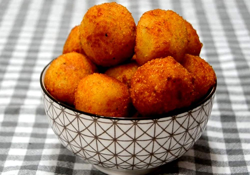 В глубокой сковороде или сотейнике разогрейте растительное масло для фритюра. Когда его температура достигнет 180 градусов Цельсия (измеряется кухонным термометром), отправьте в сковороду подготовленные шарики и жарьте до золотисто-коричневой корочки со всех сторон.