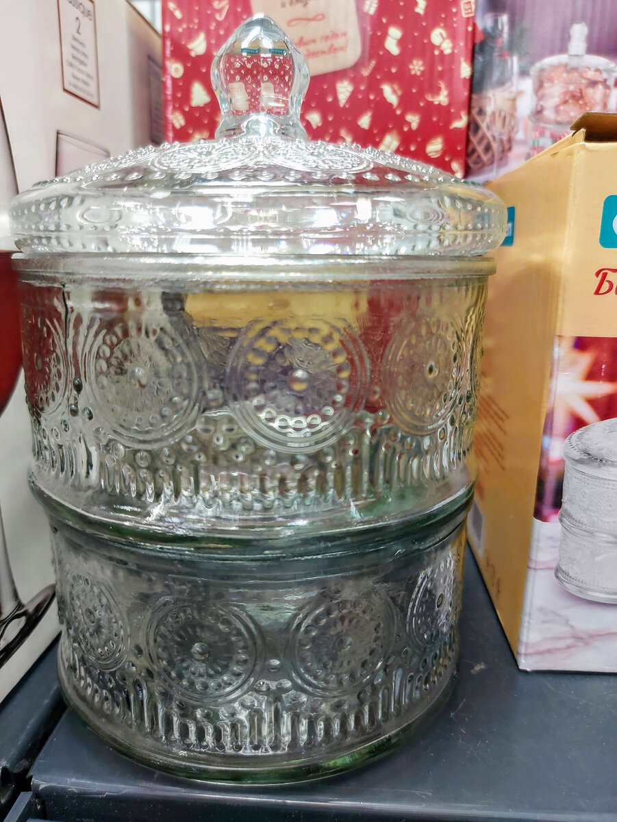 Всем привет! Рада видеть вас у себя в гостях. Надеюсь, найдете что-то полезное для себя и проведете минутку с пользой. Огромное спасибо тем, кто не жалеет ставить пальчик вверх 👍 и делится своим мнением в комментариях. Благодарю ❤❤❤ Банка Двухъярусная стеклянная банка, подойдет как для праздничной сервировки стола, так и может стать неплохим подарком. Думаю, что хранить в ней можно не только съестное, но и украшения, а еще использовать для ватных дисков и палочек. Общий объем 960 мл. Цена 199 рублей. Декоративный домик Нравятся мне эти декоративные домики, выглядят очень уютно. Покупала в прошлом году такой и он не терял актуальность весь год. Сначала декорировала его мишурой и гирляндой на батарейках. Весной задействовала при оформлении пасхального стола, а в летний период ставила внутрь маленький сосуд с водой и заполняла живыми цветами. А еще можно использовать его и для упаковки подарков. Выполнены из фанеры. Цена 249 рублей. Скатерть Рогожка Еще один прошлогодний товар - скате