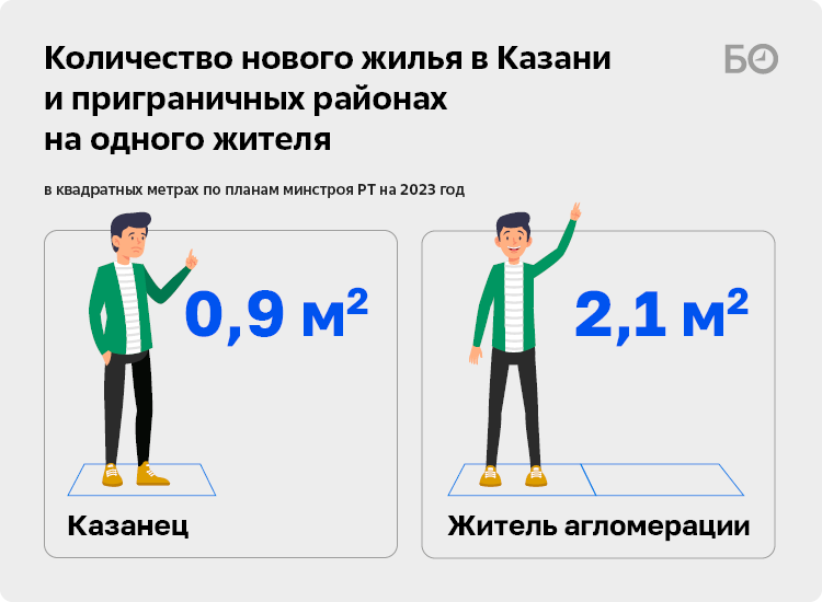 Массовое строительство жилья власти РТ концентрируют в Казанской агломерации, оставляя до лучших времен Камскую и Альметьевскую. При этом в самой Казани строят в 2 раза меньше, чем в пригородных районах, в расчете на одного жителя. И эта тенденция за три года не изменилась. Если в 2019-м на одного жителя столицы РТ приходилось 0,7 кв. м нового жилья в год, а на жителей агломерации — 1,5 «квадрата», то в 2023-м соотношение составит 0,9 кв. м к 2,1 «квадрата».