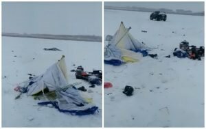 Внутри палатки находился 37-летний мужчина — он и его зять приехали рыбачить из Омской области. От полученных травм сибиряк скончался на месте.
