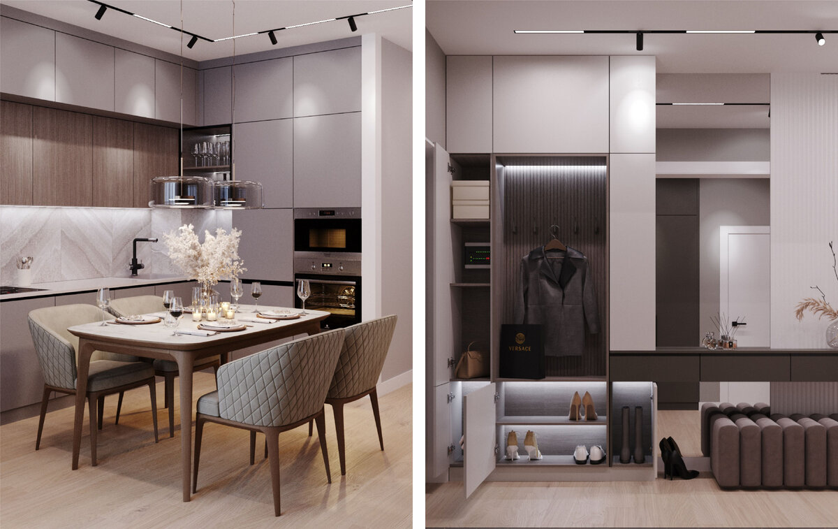 При оформлении прихожей стоит закрывать стены на столько, на сколько это возможно. Чаще всего в прихожей мы устанавливаем системы хранения для верхней одежды и обуви, а это значит, что шкаф по сути будет являться неким защитным элементом, который и не даст нам запачкать стены мокрой верхней одеждой.