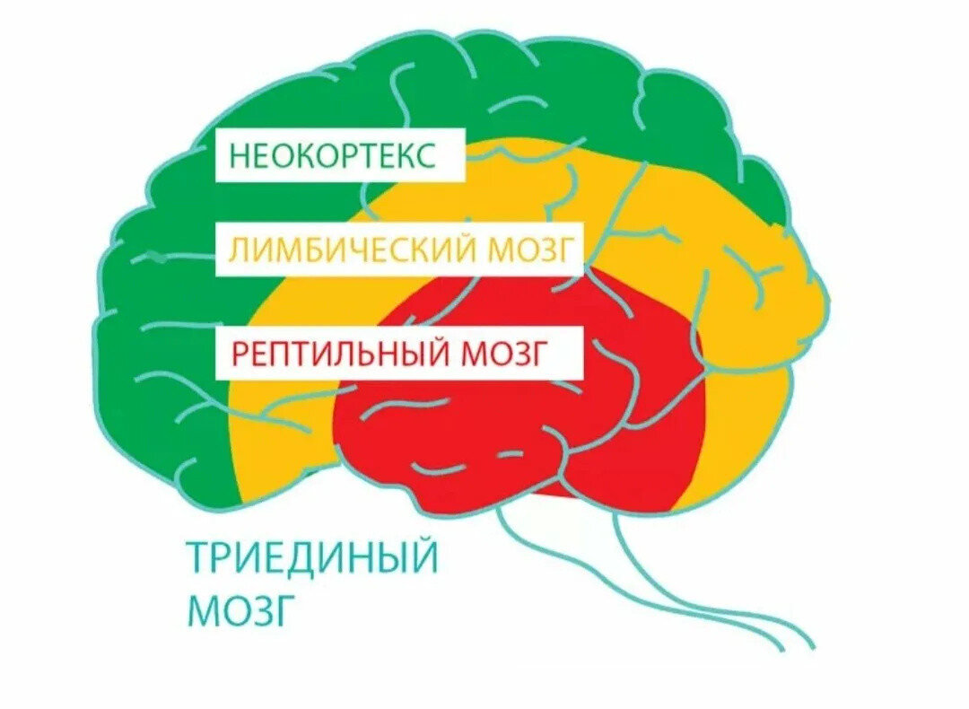 Согласно Ф. Перлзу , все, что происходит с нами, наша психика должна «пережевать, проглотить, переварить». Если психика не смогла пройти один из этапов, формируется психологическая травма. Травма должна быть проработана в момент столкновения с ней. Но не всегда может быть достаточно ресурсов для ее переработки, или травма была настолько эмоционально насыщена, что психика не справилась. Если травма не перерабатывается, она контейнируется, «опускается» на определенные уровни психики и оседает в теле. Наш мозг состоит из трех частей: неокортекс, лимбическая система и рептильный ум. Проблема человека происходит при взаимодействии всех трех частей мозга. Самый «старый рептильный ум» функционирует на уровне базовых инстинктов, отвечающих за выживание вида. Лимбическая система включает эмоции и чувства. Неокортекс – сознание, интеллект Многие уже знают о негативных установках, иррациональных убеждениях. Однако, работа только с изменениями убеждений поверхностна, так как система убеждений суще