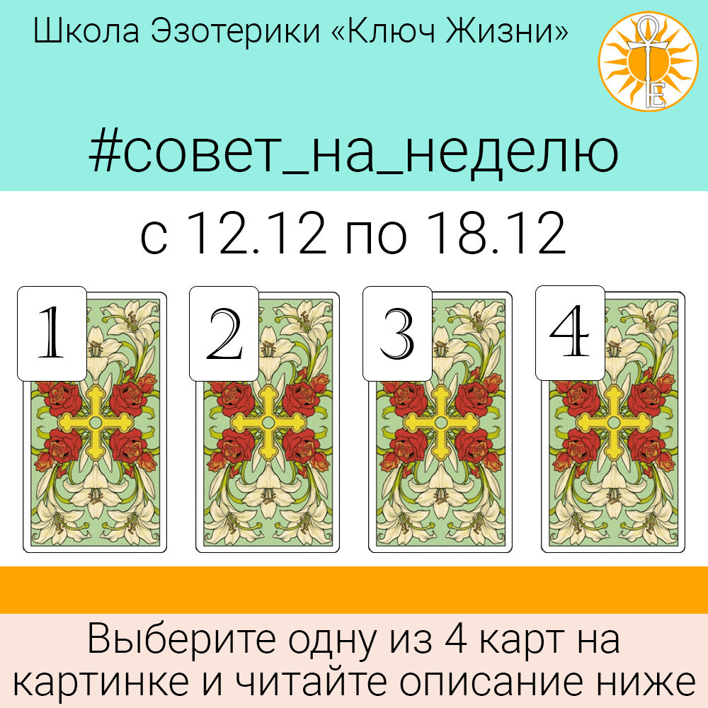 Совет на текущую неделю: Выберите одну из 4 карт на картинке и читайте описание ниже: ⬇️ ⬇️ ⬇️ 1️⃣9 мечей – Ничего не бойтесь. Вы можете очень сильно переживать из-за какого-то события или отсутствия его. Но на самом деле всё не так страшно. Пройдёт время, и вы посмотрите на ситуацию с другой точки зрения и вам всё это покажется несущественным. Берегите нервы. Но в тоже время не сдавайтесь, ваша жизнь в ваших руках., нельзя их опускать. Постарайтесь не принимать важных решений на эмоциях. Возможно лучше попить успокоительные. 2️⃣9 пентаклей – Проявите максимальную практичность и постарайтесь извлечь выгоду из всего происходящего вокруг вас. О высоких материях будете думать потом. Сейчас ваша задача обеспечить себе материальный комфорт. Расставьте приоритеты и пока отбросьте в сторону дела, которые не приносят вам никакой пользы. А также сократите общение с людьми, которые лишь отнимают время и ничего не дают взамен. Проследите за здоровьем, возможны скрытые проблемы. 3️⃣Туз ку