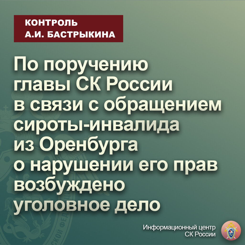По поручению главы СК России в связи с обращением сироты-инвалида из Оренбурга о нарушении его прав возбуждено уголовное дело