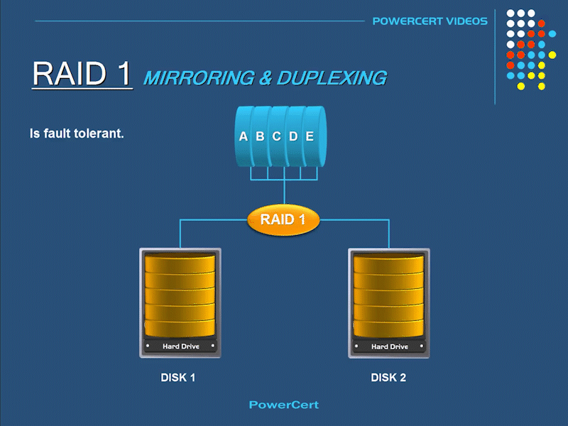 Данные синхронно записываются как минимум на два диска сразу. Если один из дисков выходит из строя, то данные не будут потеряны. Собрав в RAID-массив два диска, получаем всего лишь 50% от общей емкости диска.