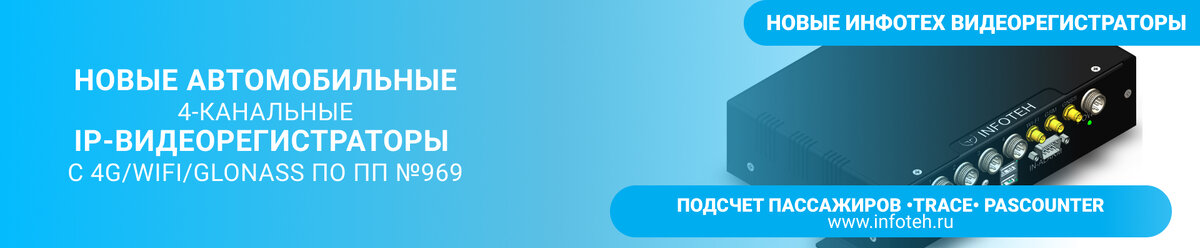 Компания ИНФОТЕХ представляет новые компактные 4-канальные автомобильные IP-видеорегистраторы AVR-4FHD24GW4G (IPC4) по ПП №969 со встроенными модулями WiFi/4G/GLONASS и автоматическим подключением к облачному сервису видеонаблюдения TRACE для применения на транспортных средствах, где требуется многоканальное IP-видеонаблюдение, спутниковая навигация и онлайн передача данных. Ключевые характеристики IP-видеорегистратора AVR-4FHD24GW4G (IPC4) Преимущества IP-видеорегистраторов AVR-4FHD24GW4G (IPC4) Высочайшее качество видеоизображения Новые видеорегистраторы обеспечивают запись видео 4-х цифровых каналов с IP-камер с разрешением 1080p и хранение данных на SSD-накопителе до 3 месяцев. Многофункциональное использование Видеорегистраторы AVR-4FHD24GW4G (IPC4) производятся со встроенными модулями связи 4G/WiFi, навигационными модулями GPS/ГЛОНАСС, «сухими» контактами и интерфейсом USB для подключения датчиков, что позволяет их использовать для широкого круга задач мониторинга на пассажирско
