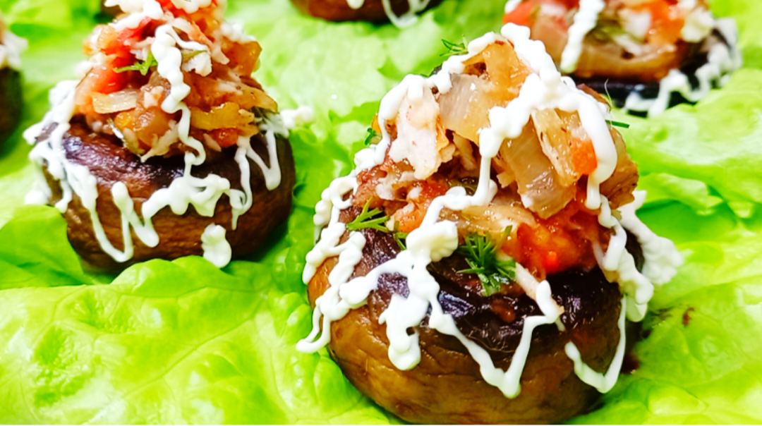 Здравствуйте! Сегодня приготовим праздничную и вкусную закуску "Елочки" на новогодний стол. Видео- рецепт: Для приготовления закуски берем самые крупные шампиньоны. 1. Грибы хорошенько моем, сушим и отделяем от них ножки. 2. Теперь шляпки от грибов обжариваем на сливочном масле с добавлением немного подсолнечного. 3. Сверху посолим и прикрываем сковороду крышкой. Жарим на среднем огне до золотистой корочки. Когда грибы подрумянились переворачиваем. 4. Пока шляпки жарятся, мелко порежем грибные ножки и сразу нарежем репчатый лук. 5. Готовые румяные шляпки достаем на салфетку, чтобы избавиться от лишнего масла. 6. А теперь сюда в эту же сковородку отправляем нарезанные ингредиенты и обжариваем до готовности. 7. А в это время нарежем помидор кубиком.и добавляем в сковородку , перемешиваем и готовим примерно еще минут 5 8. В конце солим, перчим по вкусу, и добавляем чеснок. Сковороду с готовой начинкой снимаем с плиты и перекладываем в тарелку. 9. Добавляем к начинке мелко на